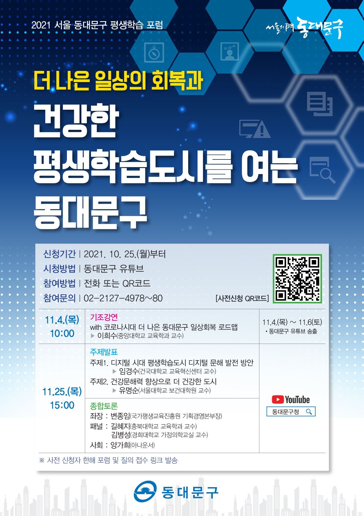 2021 동대문구 평생학습 포럼 개최…11월 4일 기조 강연, 25일 주제발표