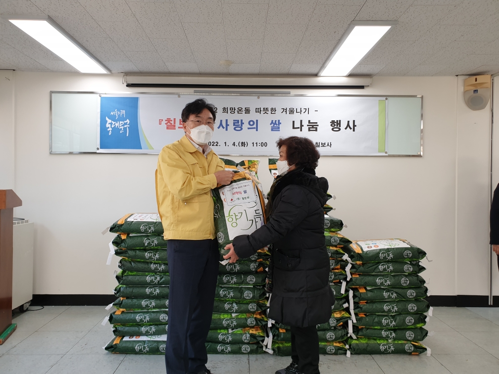 답십리2동 소재 칠보사(대원스님)는 1월 4일 사랑의 쌀 100포(20kg)를 코로나19로 더윽 어려움을 겪고 있는 취약계층을 위해 답십리2동에 기탁했다.