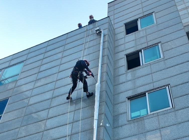이날 출동한 소방서는 고드름 제거기로 건물 5층과 6층에 있는 우수관 고드름을 제거했다.