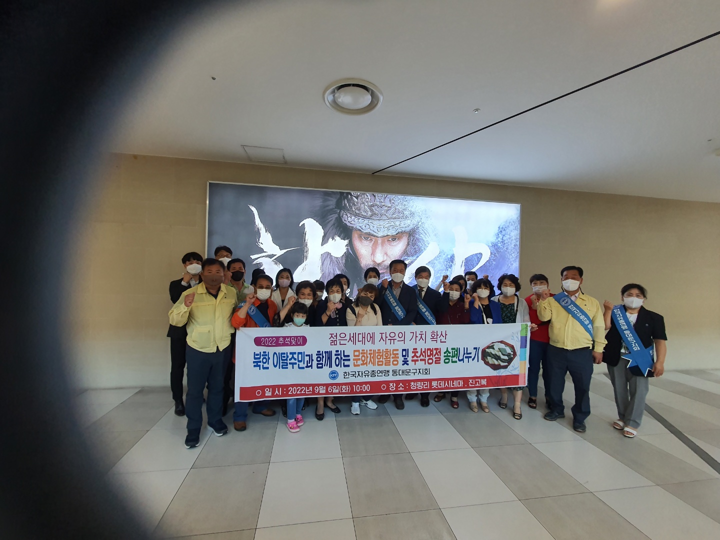 이날 행사는 관내 탈북민 50여명을 초대해 롯데시네마에서 ‘한산 용의출현’을 관람한 후 진고복 식당에서 식사를 함께했다.