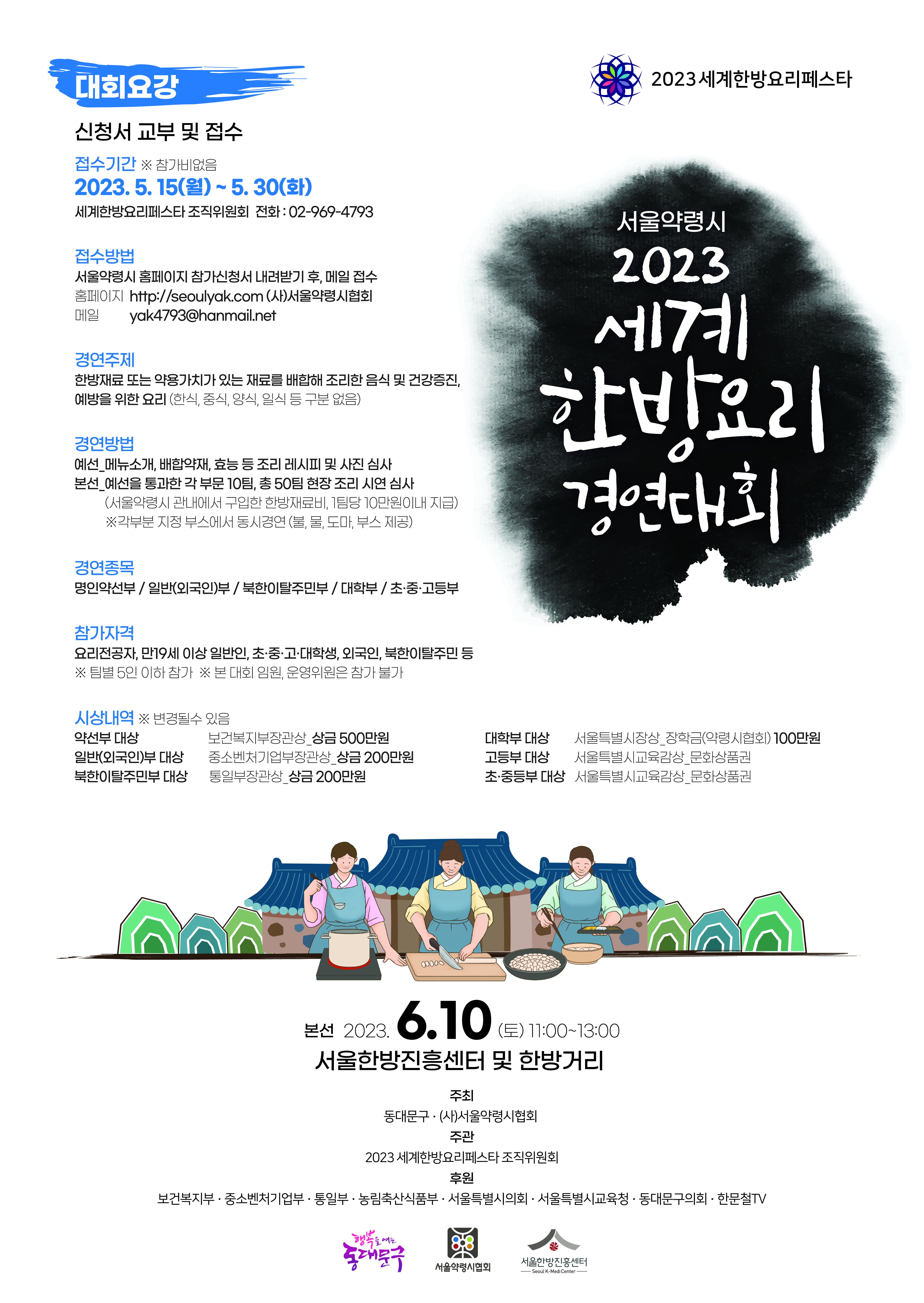 (사)서울약령시협회(회장 김월진)와 동대문구(구청장 이필형)가 공동 주최하는 ‘2023 세계한방요리페스타’가 6월 10일 서울약령시 한방거리 일대와 서울한방진흥센터에서 개최된다.