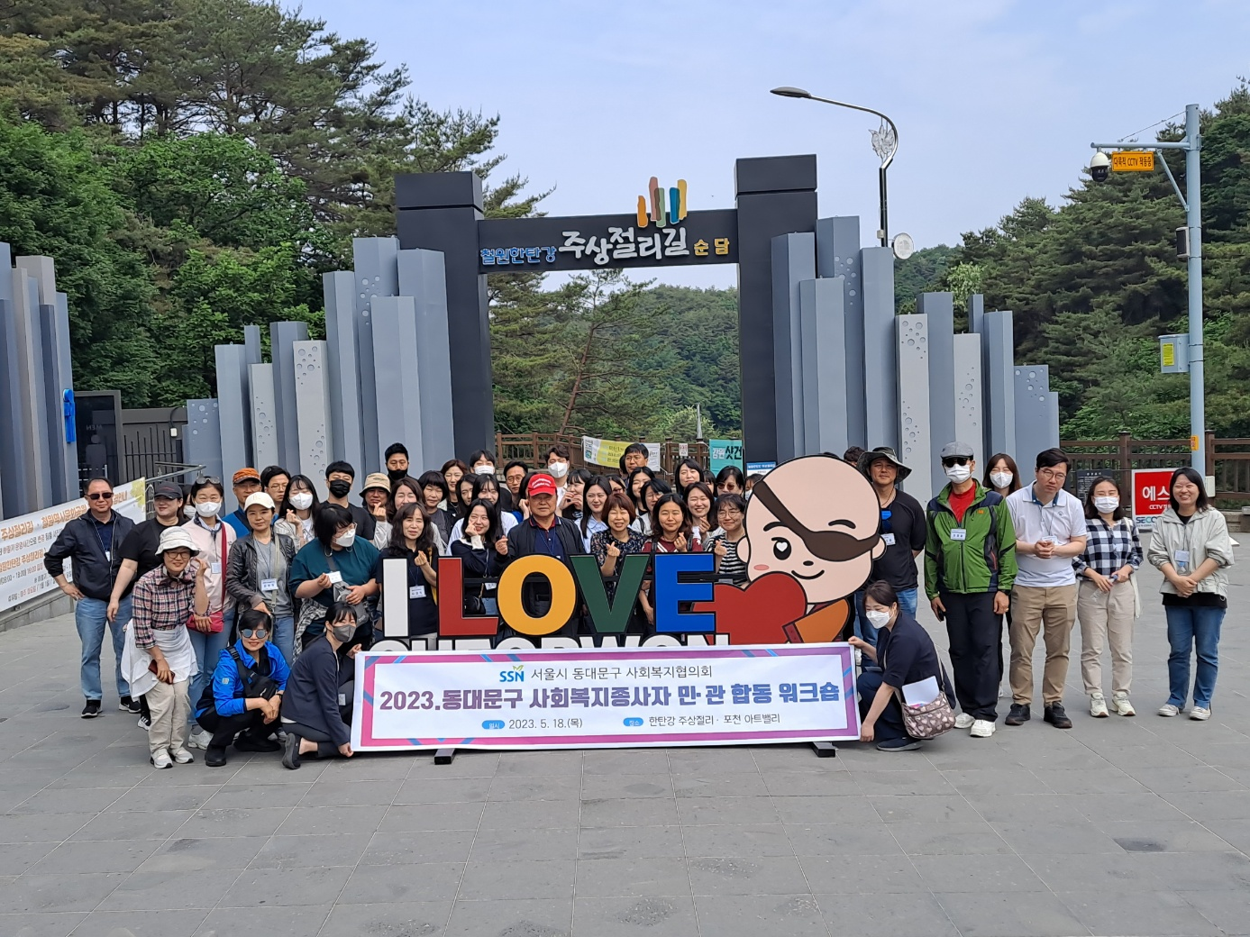 동대문구사회복지협의회(회장 박상종)에서는 5월 18일 동대문구 관내 사회복지기관과 시설에 종사하는 사회복지종사자와 구청과 동주민센터에서 추천한 사회복지공무원 등 70여명이 참석한 가운데 강원도 철원과 포천 등에서 ‘2023년도 동대문구사회복지종사자 민·관 합동 워크숍’을 가졌다.