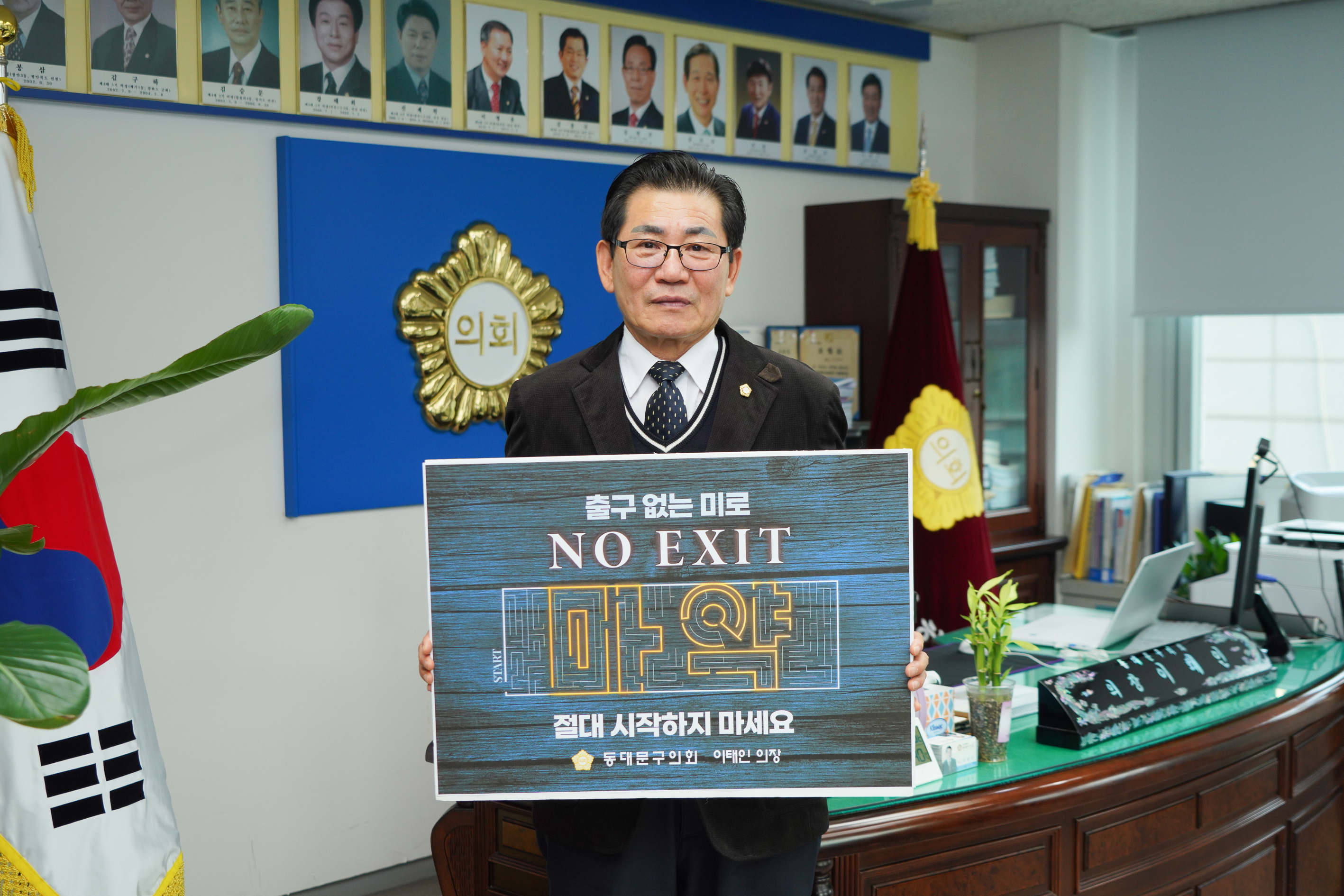 이태인 동대문구의회 의장은 11월 23일 경찰청 및 마약퇴치운동본부에서 진행하고 있는 마약 근절 캠페인 ’노엑시트(NO EXIT)‘에 동참했다.