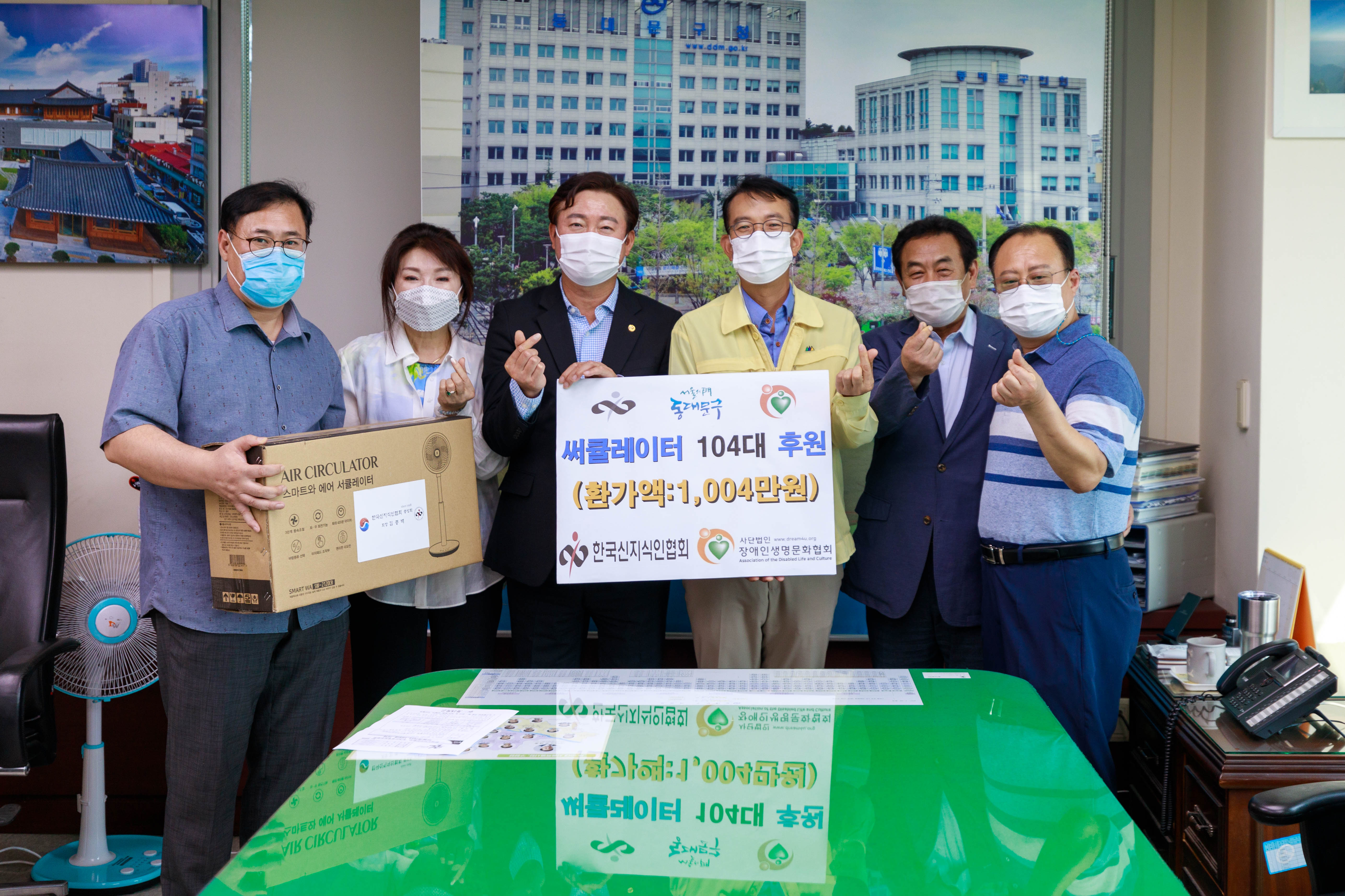 (사)한국신지식인협회와 (사)장애인생명문화협회가 폭염으로 어려움을 겪는 취약계층을 위해 동대문구에 써큘레이터 104대(일천만 원 상당)를 기탁했다.