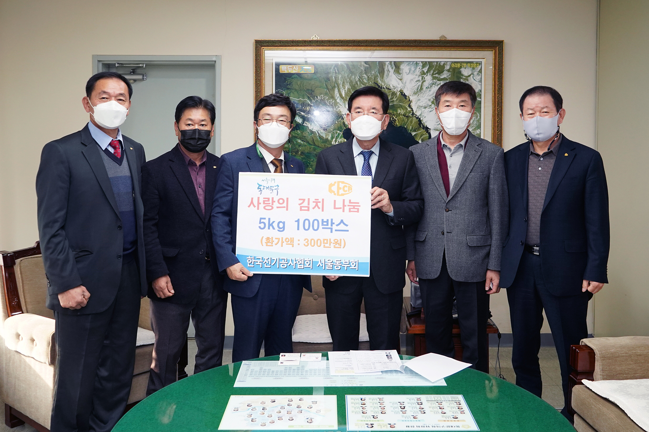 한국전기공사협회 서울시동부회(회장 주기환)가 12월 16일 동대문구청(구청장 유덕열)을 방문해 방문해 김치 5kg 100상자(환가액 300만 원 상당)를 전달했다.