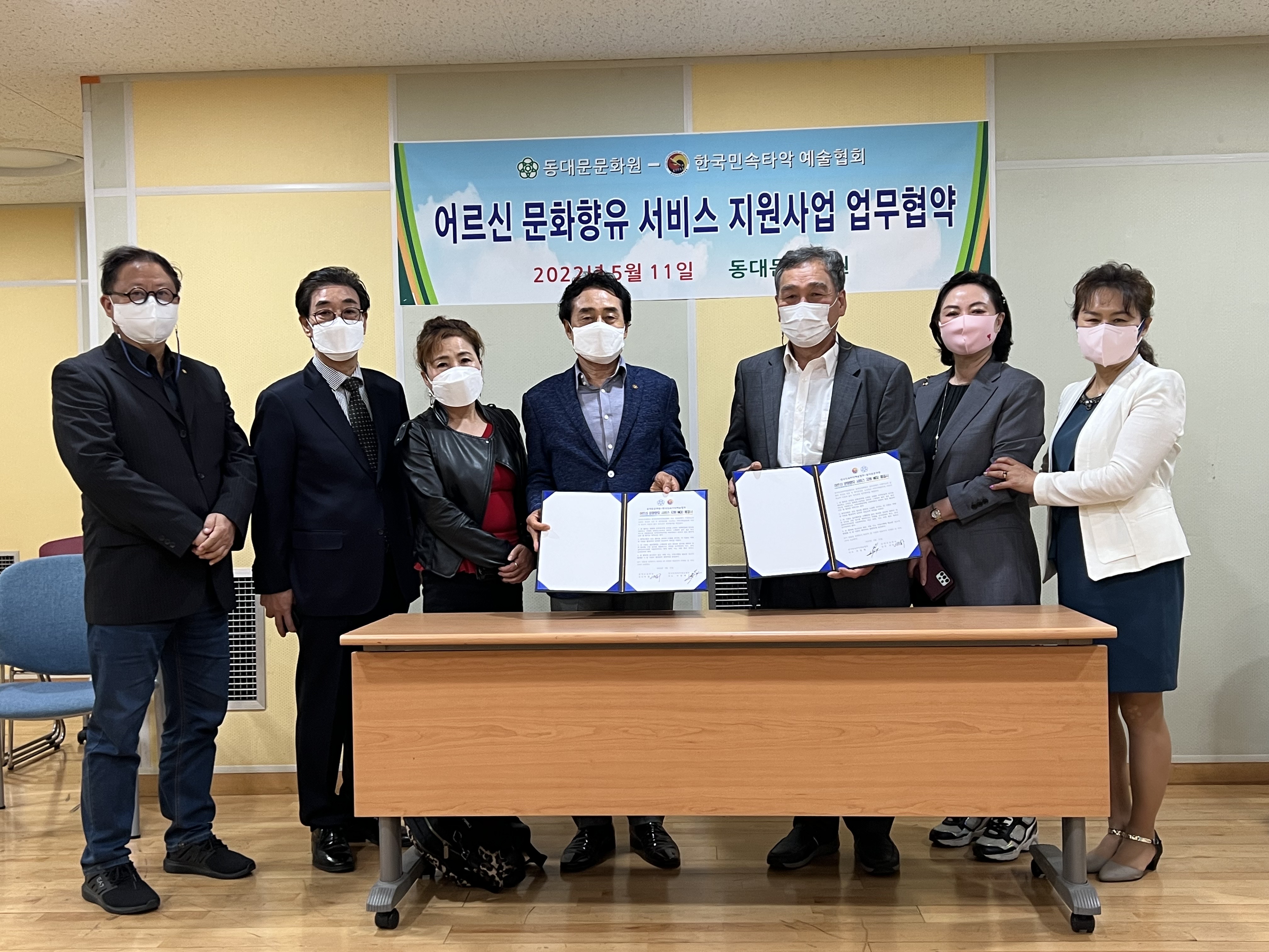 동대문문화원(원장 이점구)은 5월11일 한국민속타악예술협회(대표 이원재)와 함께 지역의 어르신들이 보다 즐거운 일상을 만끽하면서 문화적으로 향유의 기쁨을 누릴 수 있도록 하자는 취지의 어르신문화향유 서비스사업의 업무 협약을 채결 했다.