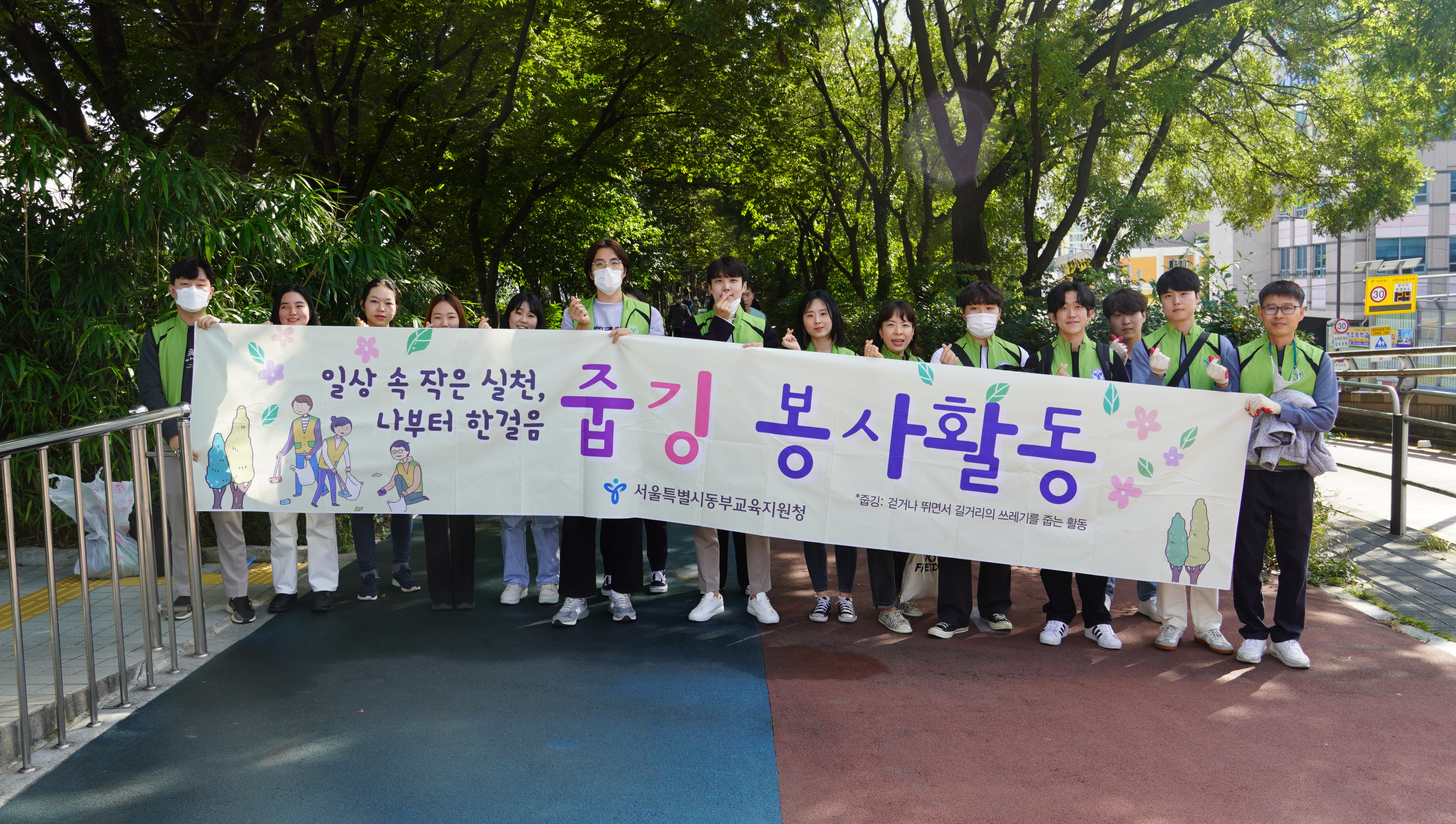 서울동부교육지원청 소속 새내기공무원 14명은 10월 14일 중랑천 및 장안평제방길에서 줍깅 봉사활동을 실시했다.