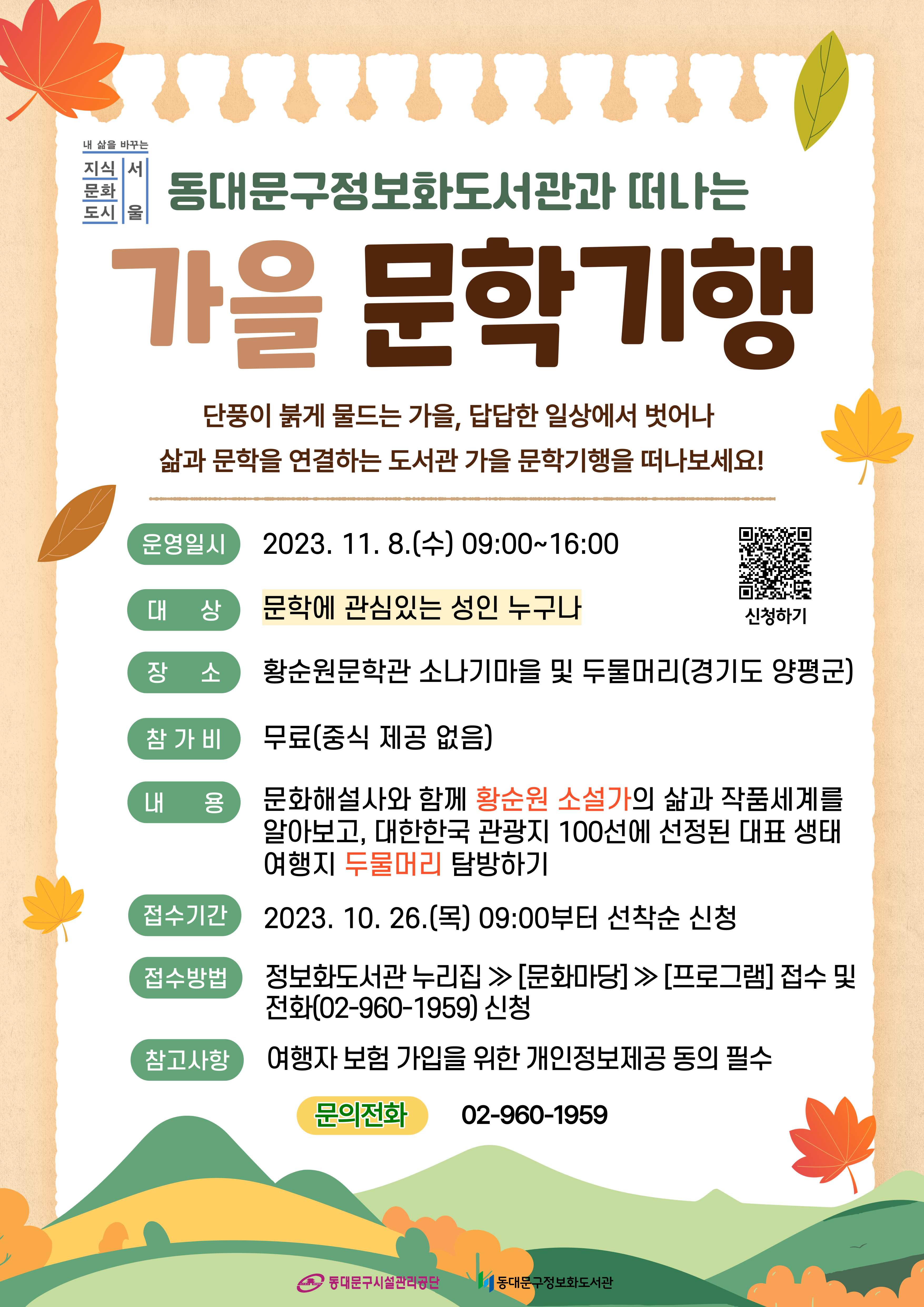 동대문구정보화도서관과 떠나는 가을 문학기행 참여자 모집